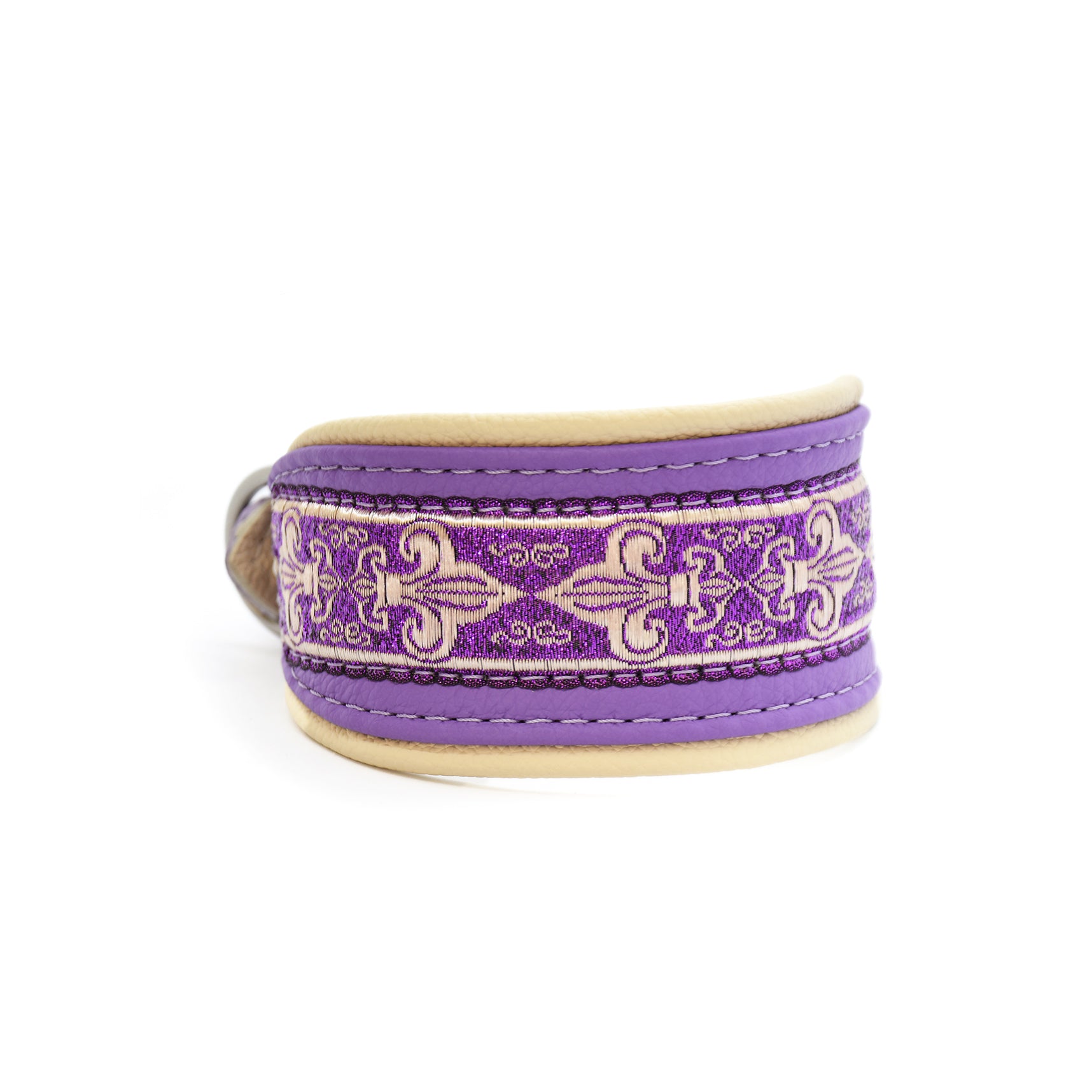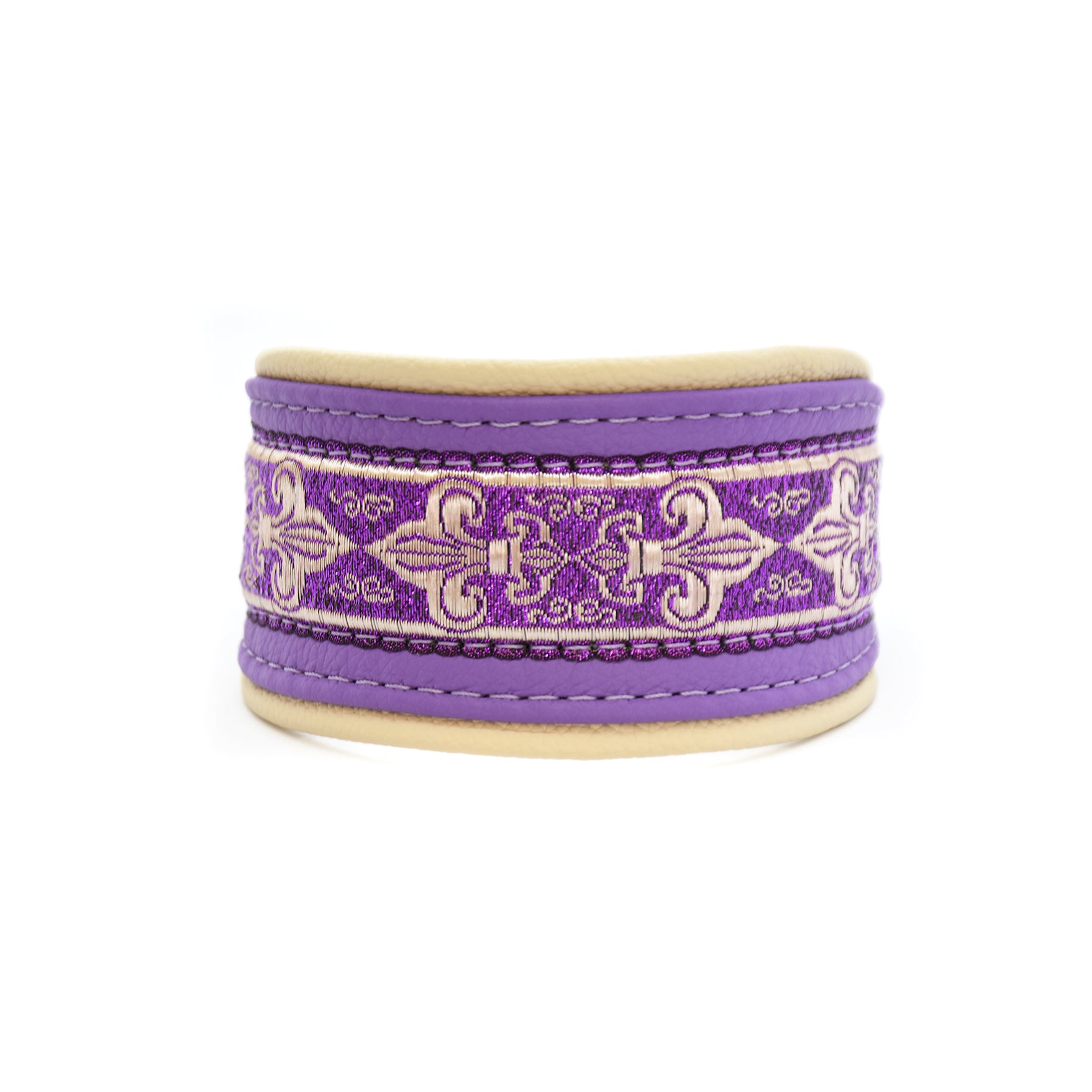 Halsband AMETHYST mit Borte – Elegantes, gepolstertes Windhundhalsband aus Leder in lila Creme