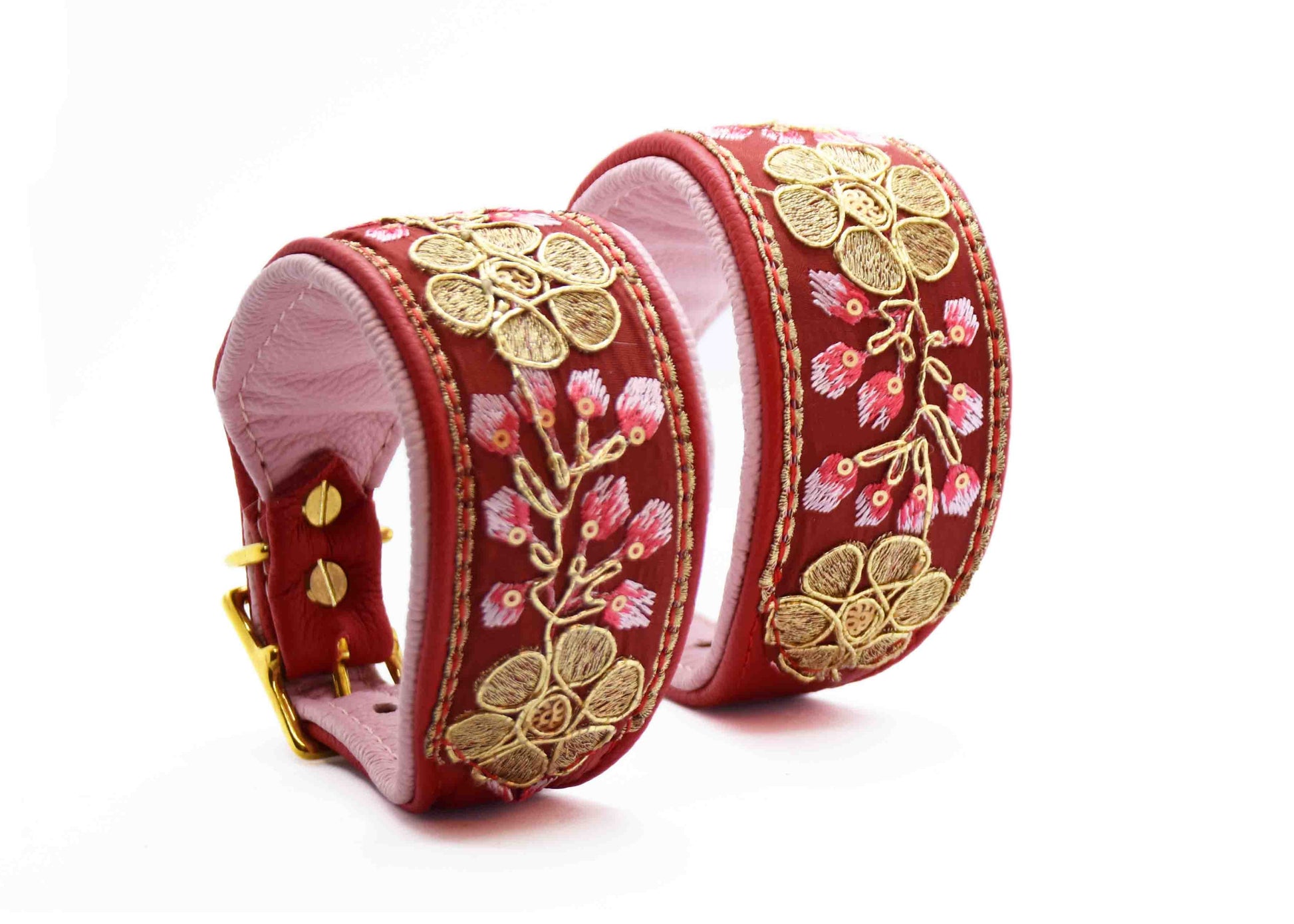 Entdecke unser exklusives Sari red Halsband – Ein edles Schmuckstück für deinen Windhund